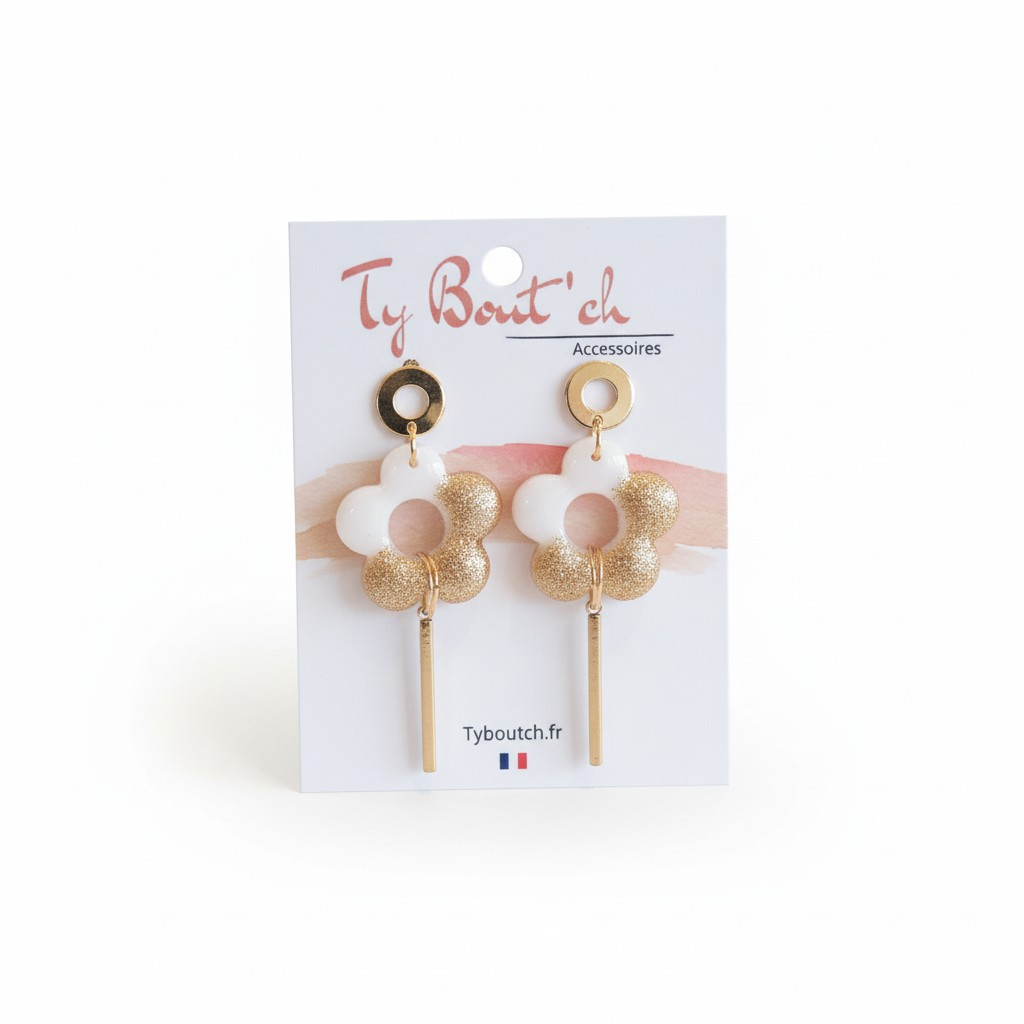Boucles d’oreilles COROLLE blanc et doré
